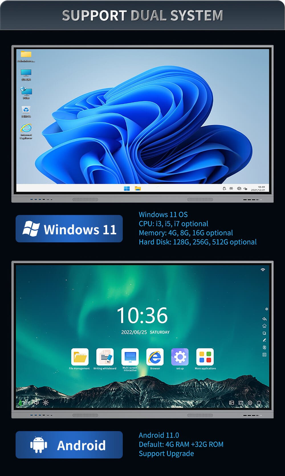 Large format screens. These are equipped with a standalone system on a chip that manages all the interactive functions independently.
